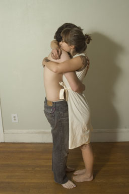 "Memories of Your Devotion" is an investigation of a past relationship in attempt to reveal, through paint on the blank canvas of three dresses, the traces of others that we record on our bodies.